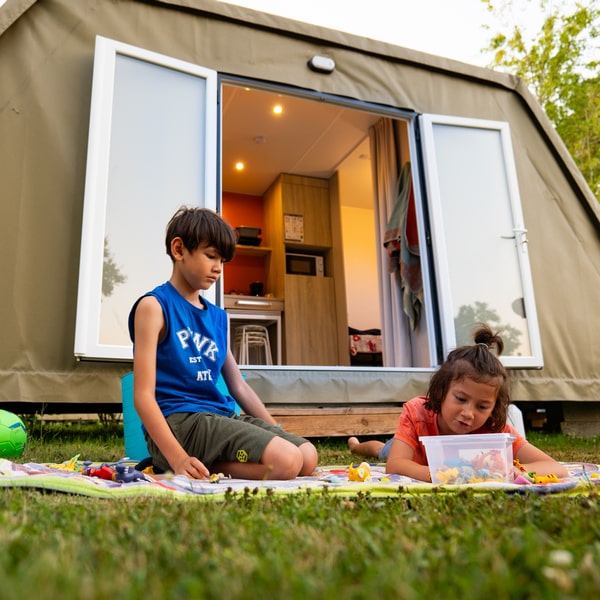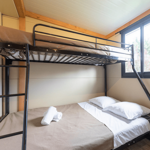 La Cocosweet est le bon compromis entre la tente et le chalet : compacte, charmante, et avec une petite note douillette qui vous garantit une nuit douce. Elle offre un espace cosy où l’on se projette dans les vacances ! À l’intérieur, tout est pensé pour rendre la vie douce : de vrais lits pour éviter la gymnastique matinale du dépliage de tente, un petit coin cuisine pour préparer vos festins de campeur, et l’électricité bien sûr. Vous profitez du charme du camping, mais version prêt-à-camper !