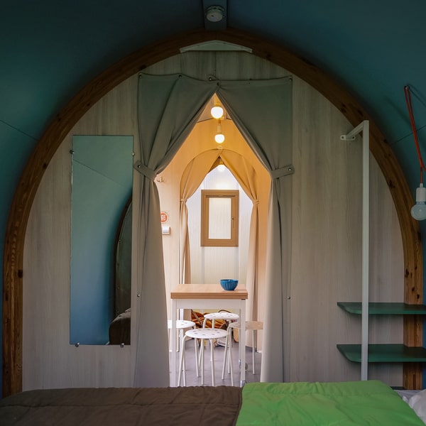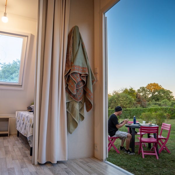 Minimaliste mais à croquer, cette petite tente en bois est parfaite pour une escapade en duo. Un cocon chaleureux où il fait bon se reposer après une journée pleine d’aventures. Le petit nid idéal pour les cyclo-touristes qui voyagent léger ! Profitez d’un petit salon de jardin pour les journées ensoleillées.