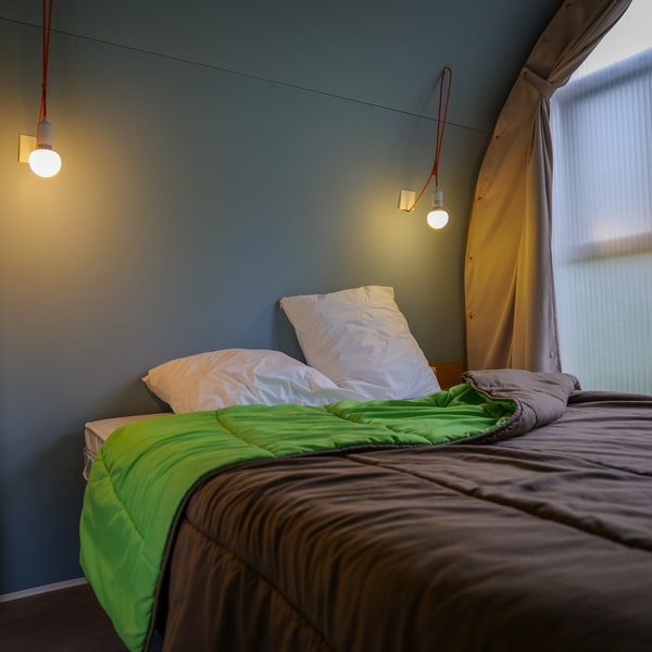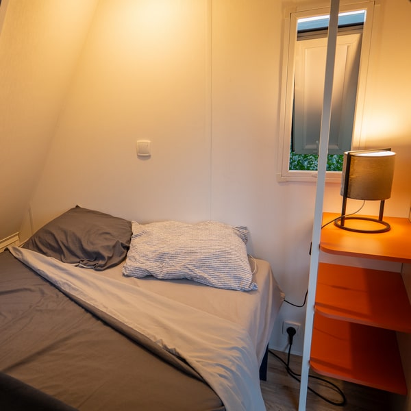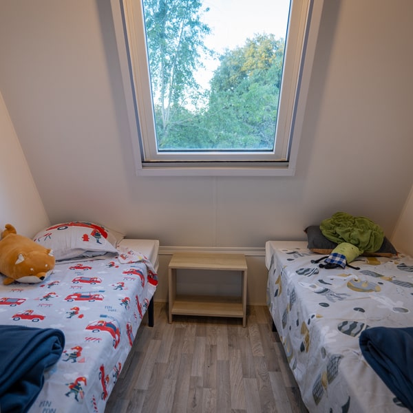 Un coin chambre avec 2 lits simples (90×190). Les couvertures et oreillers sont fournis (la location ne comprend pas le linge de lit et de toilette).